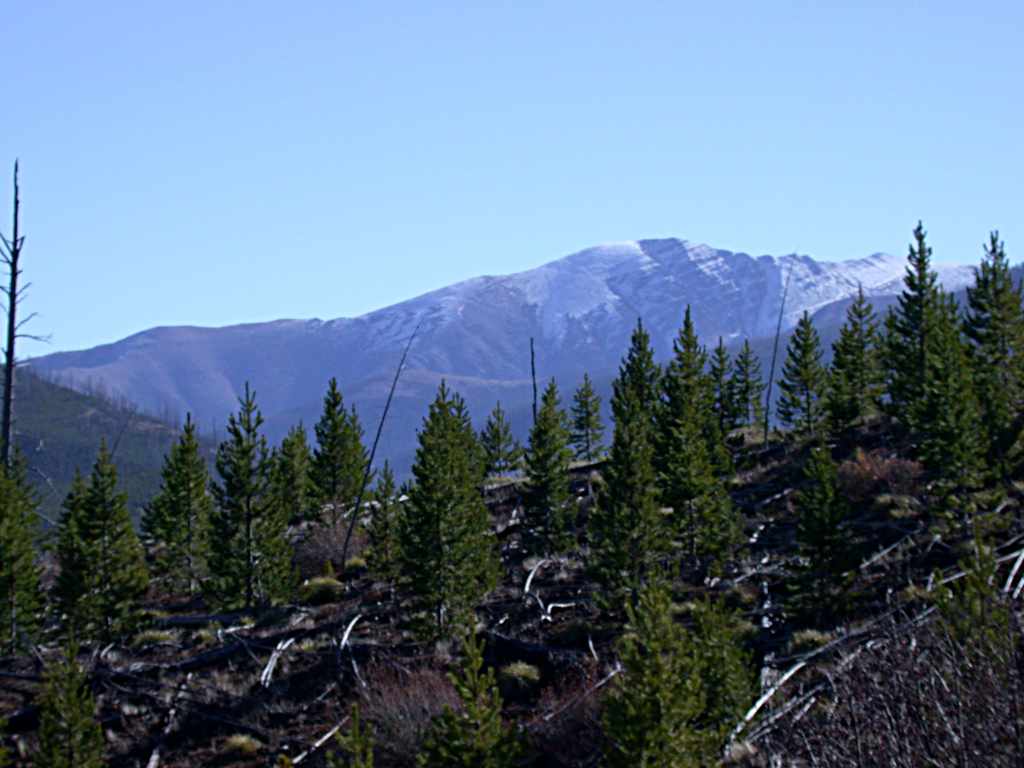 Despite the length of time I've been here, I'd never been to the top of Falls Point, where there is an abandoned U.S. Forest Service fire lookout. Falls Point is a small peak just above the Forest Sevice cabin on the North Fork of the Blackfoot River, in the Scapegoat Wilderness area. The cabin is about six miles from the trailhead, and it's another three miles or so up Falls Point. But I was riding from the house, which is another seven miles from the trailhead.