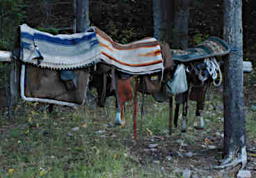 We had just left camp, crossed the river, and turned off onto the trail up Prairie Reef when we came to a tree across the trail. I discovered I had forgotten to put my saw back on my saddle. That was pretty fortunate, I thought; we could have gotten half way up and then we would have been in a bind. I rode back and got it; we never needed it again, but you never know.
