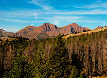 We stopped for a short rest about half way up. Off to the north I noticed some weird geology -- it looked like snakes crawling up the mountain's back.