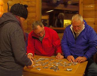 As well as making tops, Dona had made jigsaw puzzles with all the grandkids, kids, and old folks in them. Bob and Joe got the one with the old folks, made using scAnneed images of photographs when they were younger.
