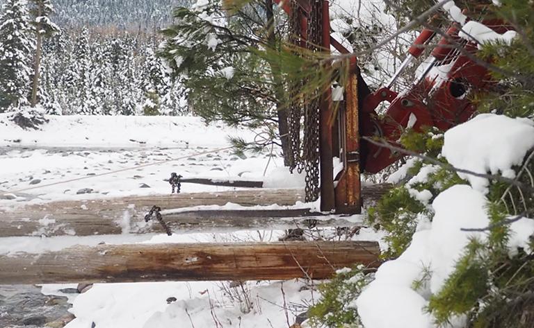 I usually make a bridge across the river in late October or early November, before we have any permanent snow on the ground. Most years we have a snow or two in September and October, but with the global warming trends we have been seeing less and less of that. I have always figured if it snowed before the middle of November we would get some warm sunny days after that to take the snow off; any snow after the middle of November marks the start of our permanent snow for the winter. This year we didn't get any real snow until November. Unfortunately, it snowed hard November 1 and we got somewhere between 10" and 14", and I had a lot of chores that should have been done before permanent snow still undone. One of them was getting the bridge in.