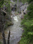 About half way up to the cabin, the creek retreats into a gorge. It was pretty hairy looking, with quite a few logs straddling the bottom just off the water or in it; and a number of blind corners with not a lot of room to eddy out. I don't think this is a good creek to boat; or at least not for me...