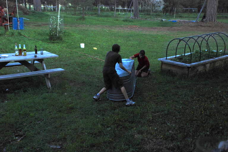 The day after the wedding, the kids were helping clean up -- picking up garbage, cleaning off plates, putting things away. That involved washing things with the hose, and whenever kids and hoses mix on a hot day, a water fight is inevitable. And in a water fight, it never hurts to have a big squirt gun. The tractor was already hooked up with the fire pump just in case for the wedding party, so I brought it out so the kids could have some real fun.