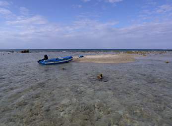 I was getting pretty beat; I think it was about low tide, and I'd been working on it for several hours by now. A few local fishermen passed by but managed to avoid paying much attention to my situation. It was a bright sunny day, and I couldn't help thinking this was a hell of a way to spend a nice day when I should have been out on the reef leisurely snorkeling. I decided high tide would be my salvation, and sat down to cogitate on my situation a bit more. High tide was a ways off.