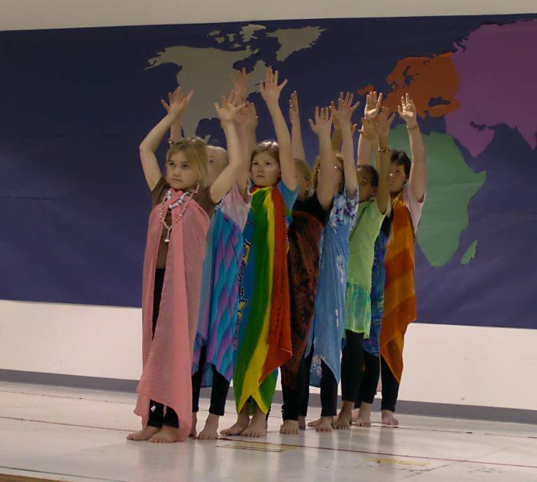 In the kids' production, music was provided by a gamelan, played by the guys, and the girls did the dancing.