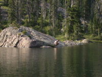 Ian and I had fun walking more slabs down to the outlet of Lace Lake.