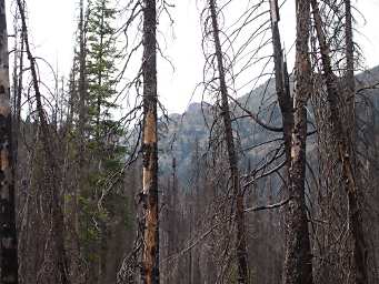 We were traveling down Jenny Creek to Youngs Creek, still mostly in a burn about ten years old. The burned over forest was covered with a purple carpet of fireweed.