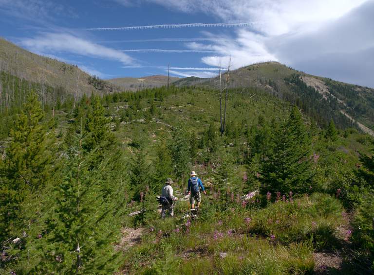 As we got up to where we could look east, we could see a number of fires burning in the Scapegoat Wilderness.