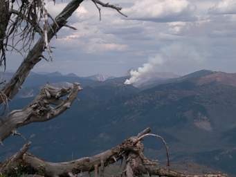 Sid, Falls Pt. Fire; Mt. Evans and Scapegoat Mt. in background