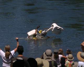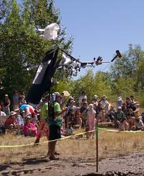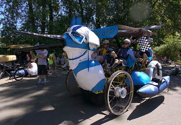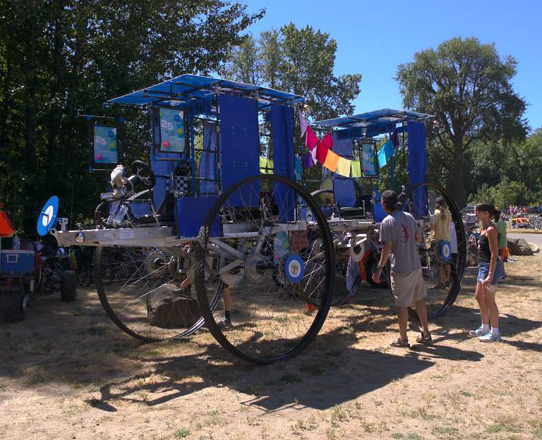 While out in Oregon for Dona's nephew's wedding celebration, we stayed with some friends in Corvallis. The weekend happened to correspond with the town's da Vinci Days summer festival. The event features a canine frisbee contest, an electric car race, demonstration and educational booths about alternative technology and ways of life, and the big attraction for us, the "Graand Kinetic Challenge" (yes, that's how it's spelled). According to the official website: