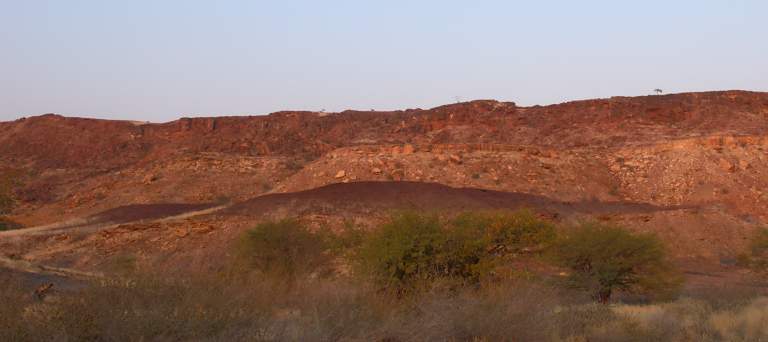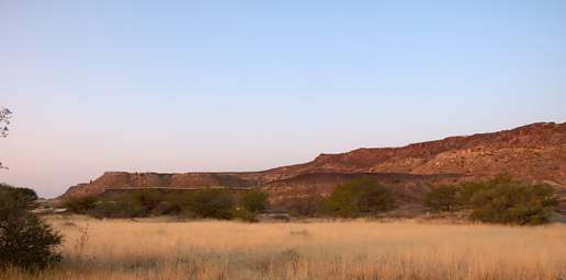 We rose early and headed out, nursing our way to Twyfelfontein, only to be informed there was no place to buy fuel -- "A long time ago they used to sell petrol, but not anymore." Ugh. I looked some more at the fuel gauge, calculated a bit, and we decided we were very close to Burnt Mountain and Organ Pipes and we may as well see them before continuing on and looking for gas. Fuel stops in Namibia are few and far between; I figured if we were going to run out of fuel, a few km one way or the other probably wasn't going to make a difference.