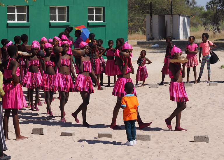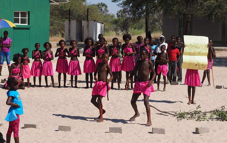 Shortly after we arrived in Ohangwena to teach at Ponhofi Secondary School, we learned from the youngsters in our house that a Cultural Festival was being held the next weekend. It was at a nearby primary school, which was just "over there." "Go past the store to the sign to the library and go down that road."