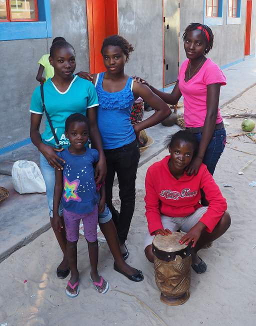 We wandered around to the back and found kids practicing for the performance, and some older women who had just arrived. All were dressed in traditional Owambo attire which is all colored various shades of pink. The necklaces they were wearing are called "onyoka" are made of pieces of mussel shells, and are a sign of wealth.