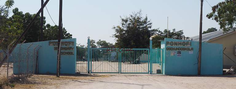 Ponhofi Secondary School serves grades 8 through 12 and has about 1200 learners. In Namibia, students are referred to as learners. I'm not sure where that came from, but probably from something the British say. But according the my on-line thesaurus, a student is a learner enrolled in an educational institution. So all students are learners, but not all learners are students. We should all be life-long learners, so it's not a bad label for kids in school. In any case, about two-thirds of Ponhofi's learners live too far away to walk to school on a daily basis, so they board at the school. The school has a front gate with a guard, and is surrounded by a razor wire fence for the childrens' safety.