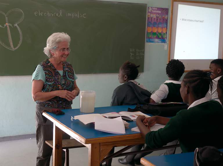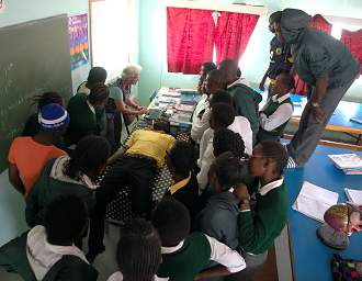 And then, way too quickly, it was time to leave. We weren't ready to leave, and I think the principal and our co-teachers would have liked us to stay longer. It was in the middle of exam time. We learned a new word -- "invigilate"; and our Namibian counterparts learned a new word -- "proctor". We had a small party; Dona baked up a batch of cinnamon rolls which were a big hit.