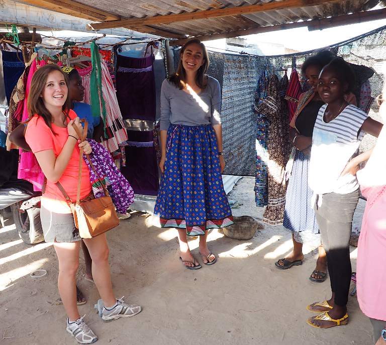 We left the mission and hitched a ride back to Oshikango, where we met up with Fletcher, Katy and Diane. Sho led us on a trip through the Oshikango open market, where we had some great Kapana and Diane and Katy again tried on clothes. Katy found one she liked and wore it out.