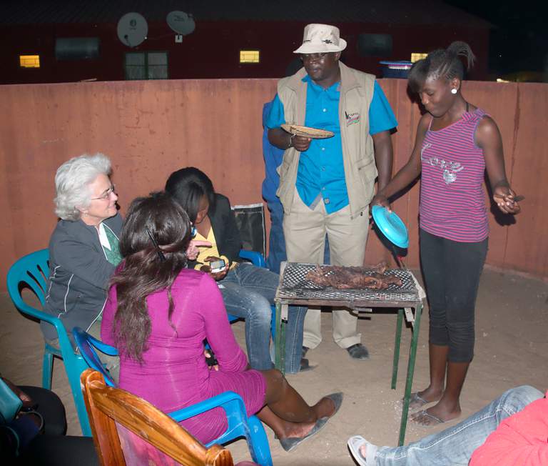 On our last night my co-teacher, Theo Mwashindange, organized a braii. As usual for this time of year, the weather was perfect. We had a good time with Kapana, Boerewors (sausage), Mahangu and drinks. Yum! Mr. Theo was the braai-meister, and everything came out great.