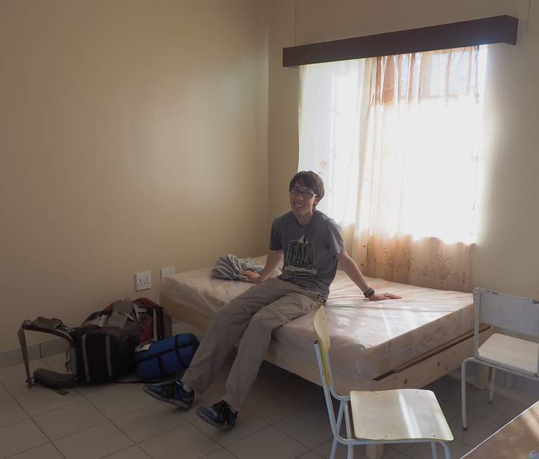 Our living arrangement was a room in a house where another Ponhofi teacher lived with her family. The room had just enough space for a double bed, a small refrigerator (hooray!), a table, and a small closet. It would be cramped, but we weren't expecting much and soon got used to it.