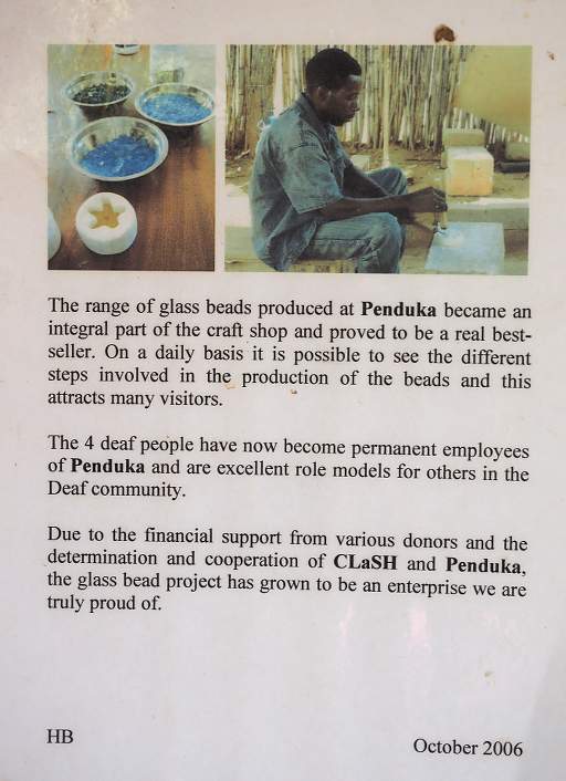 We watched as they made beads of recycled glass which are then used in jewelry. The had a sign out that said they needed red and blue glass; I have a blue bottle I could give them, but unfortunately it's not easy to get it over there...