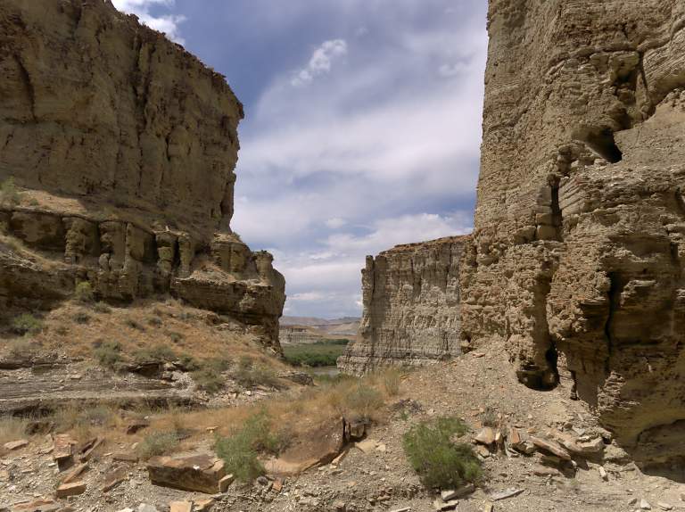 The topo map shows a fairly narrow side-canyon at about mile 93. There aren't many narrow side canyons on this part of the river, so we decided to explore it.