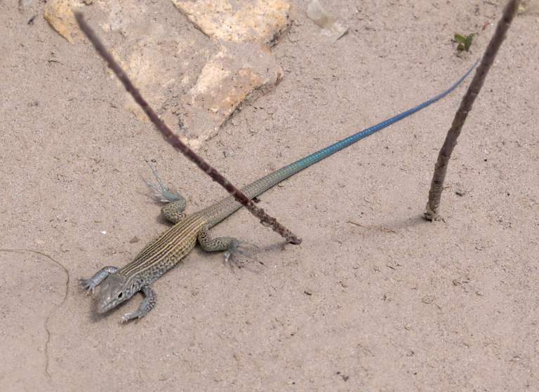 We found one or two blue-tailed lizards as well as the other more common brown ones. Those blue-tailed guys are fast! We never did catch one. I don't know what the proper name for any of the lizards / skinks we saw are. We found a few frogs which of course we had to catch.