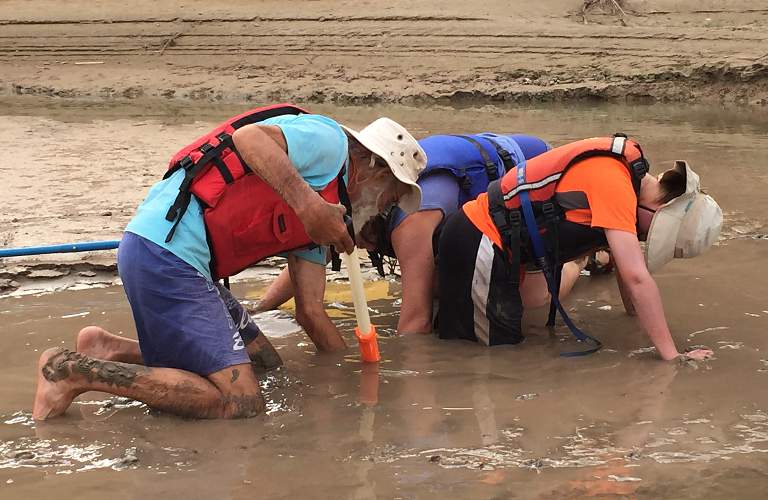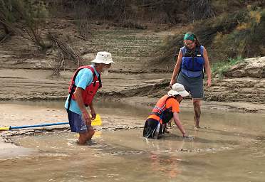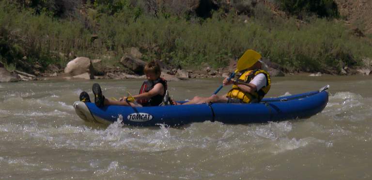 The next morning while waiting for packing the boats to be finished, Joni and Lathum practiced swimming rapids