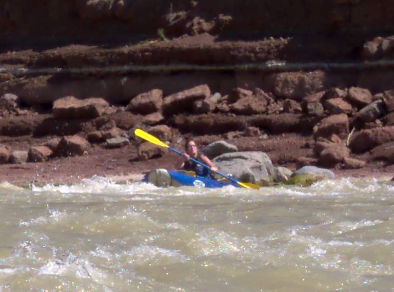 Joni made the mistake of heading into one rapid with the second paddle still in the ducky.