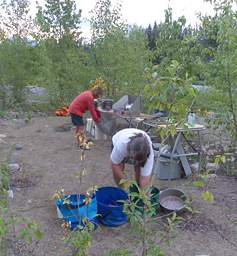 When I got up to start working on breakfast I noticed a Spotted Sandpiper running around noisily trying to distract me. It had a nest in the gravel between our main kitchen area and the bear fence, and there were three eggs and one hatchling in it. We tried to give it a lot of room.