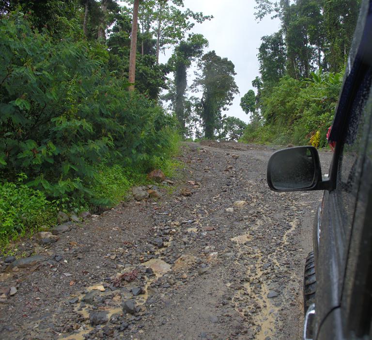 As we headed into the mountains, the roads steadily deteriorated. It was soon obvious why everyone had Toyota Hilux trucks. There were small streams running down the road, and ruts you could bury a medium-sized animal in. There was some concrete, but it was used to build a heavy-duty gutter at the side of the road to carry water away from the road, not for the road itself. The sides of the road were calving off in numerous places, and we frequently stopped to wait for a vehicle coming in the opposite direction. It was a slow trip, changing sides every hundred meters or so to find the most passable place. An adventure in driving...