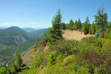 The east face of the ridge has a good-sized slide on it, so we were careful not to get too close to the edge. It would be quite a tumble down that slope.