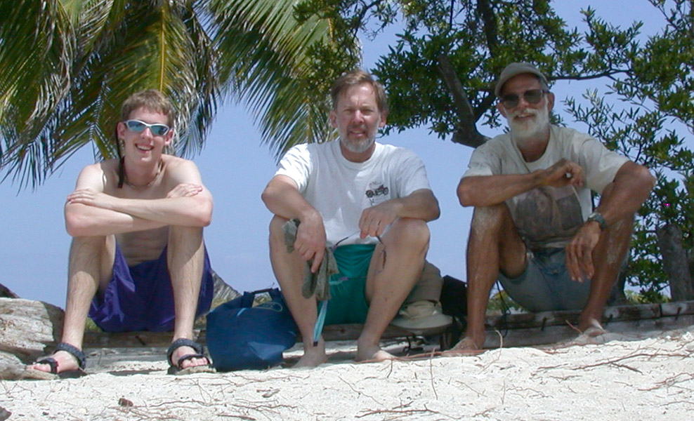 My nephew Brian Payne and his dad, Bob, came down for a week the first part of March. Our first problem was getting the engine in the boat fixed. The morning they were to arrive, I tried to start the engine so I could motor into the marina at Moho Cay near Belize City. It just went rrrrreeeerrrrr, rrrrreeeerrrr, but never kapatapatapatapata. Their introduction to sailing in Belize was a two mile, water splashing over the tubes, slow, wet dinghy ride out to where Malakii was anchored. The next day we got her towed into the marina. I thought about sailing her in, but the entrance is a shallow, narrow slot, and we would have a heck of a time stopping because there is no maneuvering room once inside. I didn't like the prospect of smashing the bow or ploughing into someone else's much more expensive boat. The first time I went in a few weeks before, we dredged the mud channel bottom a bit with the keel. We had a great mechanic, Bill McKenzie, who got the engine running in short order. It was a real treat to watch an expert at work.