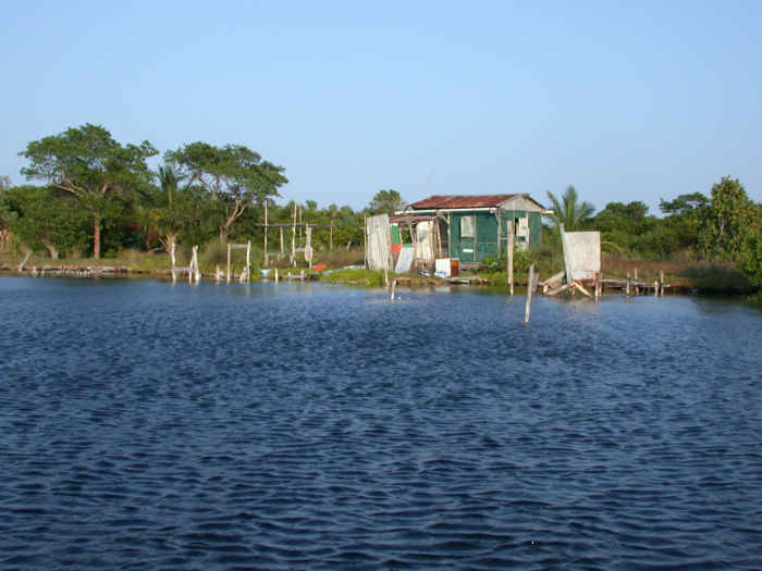 Many of the mangrove cays had fishing shacks on them. Some had real dirt of some kind, and the fishermen had planted coconuts, or else discarded or washed up coconuts had taken root. On another, it looked like a new place was just going up. There was no solid ground; everything was being built on stilts among the mangroves.