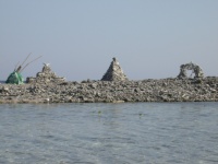 I discovered there are a bunch of big cairns people have built on the rocks on the outside side of the cay. They look like something from Norseland...
