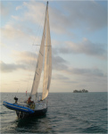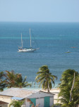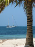 We left the next morning for Glover's, one of four atolls located off the barrier reef which runs from the Yucatan south to Guatemala. Dragon Lady was starting to motor out as I was sailing out; they let me pass and took some nice pictures as I sailed out the cut. We had wind on our nose and had to tack to make the south entrance to Glovers. I hit Glovers a little further north on the west side, and followed the edge of the surrounding reef down and around to the entrance at Southwest Cay. I found a few breaks where it looked like I could get through, but since I was sailing and it was tight, I didn't try them.