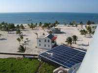 The next day was a lazy day. It had been blowing 15 - 25 pretty continuously, so we were kind of in a holding pattern. I played my banjo and read. In the afternoon Tom and I went snorkling looking for dinner, but visibility was pretty poor. We went over to the Marisol bar and the owner was there. He said would like to buy the Manta Resort (the deserted one on SW Cay, closed in 2006), but it was $5M.