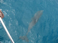 As we were heading out past Douglas Cay Tom radioed that he had a large dolphin near them with a scarred dorsal fin. Sure enough, a few minutes later it was keeping me company.