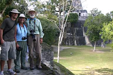 We got to Tikal about noon. The ruins of Tikal are in a big park, and once you enter the park the speed limit is 45 km/hr. On entry you get passes for the people in the vehicle and a piece of paper for the vehicle, on which they write the time of entry. It's a long way from the entrance to the actual archeological site, and we did a lot more than 45 km/hr. When we got there they guy at the entrance wrote the finish time down, but didn't process it. I realized they could look at the times and tell we were speeding. So I forged the start time to be earlier... a lot earlier, since doing anything else would have been difficult for me with my minimal forgery skills.