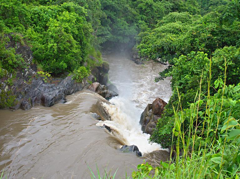 The natural bridge we went to see is not the little arch above the falls, but a large one spanning the whole gorge containing the river. The bridge is known as "Daraja la Mungu" which means "A bridge made by God". There is a man-made road bridge a bit upstream of the natural bridge from where you get a good view of the natural bridge and the river below.