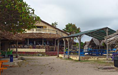 Dona had made us reservations at Kipepeo Beach Village, a place on the beach on the south side of Dar es Salaam. We had a heck of a time finding the place; the main road was torn up so we had to detour. But like all good Tanzanian road matters, whoever was responsible didn't put up any signs. You were just supposed to know your way around. We went back and forth, asked about fifteen people which way to go — half said one way, half said the other. The main problem was a huge oil refinery and a military base, and we needed to be on the other side of them. It was right there but you couldn't get there from here. We finally made it, then I got a traffic ticket for doing 58 km / hr in a 50 km / hr zone. Of course, no one else was going too fast, just me. Uh-huh.