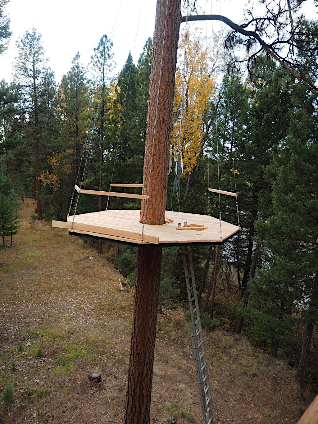 - Climb up the tree and put eight chokers around it about 40 feet above where you want the platform.